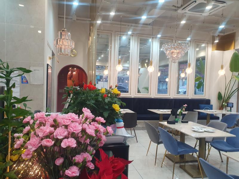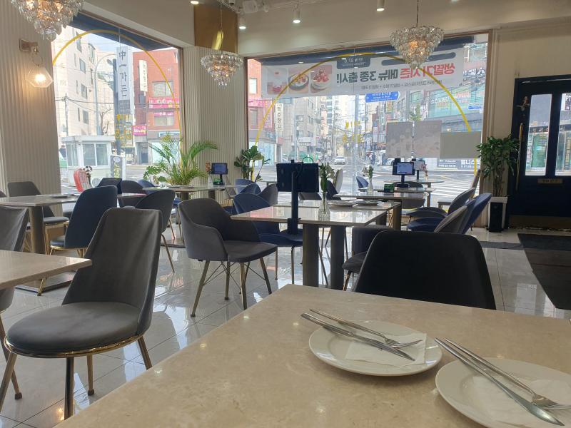 35평 홀,주방,화장실 파우더룸,대리석인테리어 시설비 2.5억이상 투자. 고급샹들리에 시설물:스노우반제빙기, 에어컨,냉장고,오븐,화구,튀김기,음료쇼케이스,커피머신,의자는 사용감유.