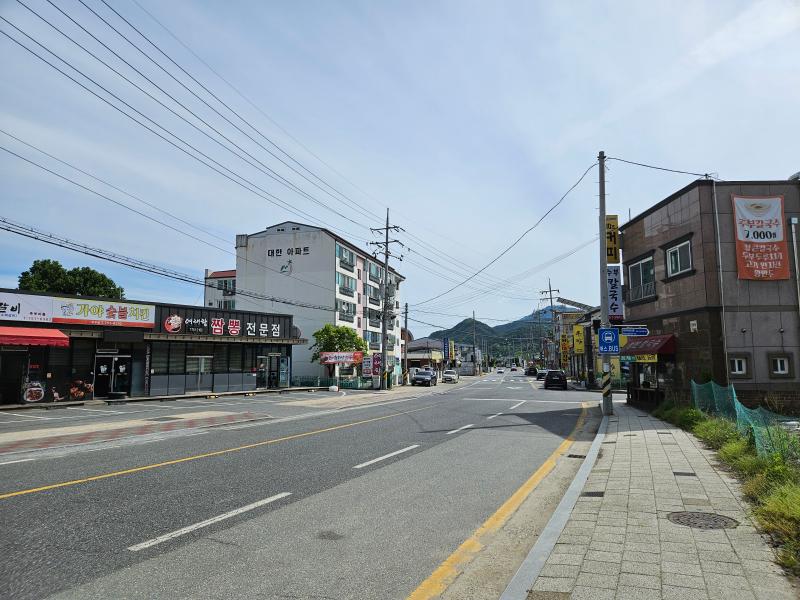 삼거리 위치하여 대형마트 2개를 마주보고 있음 추부면 식당가거리형성됨