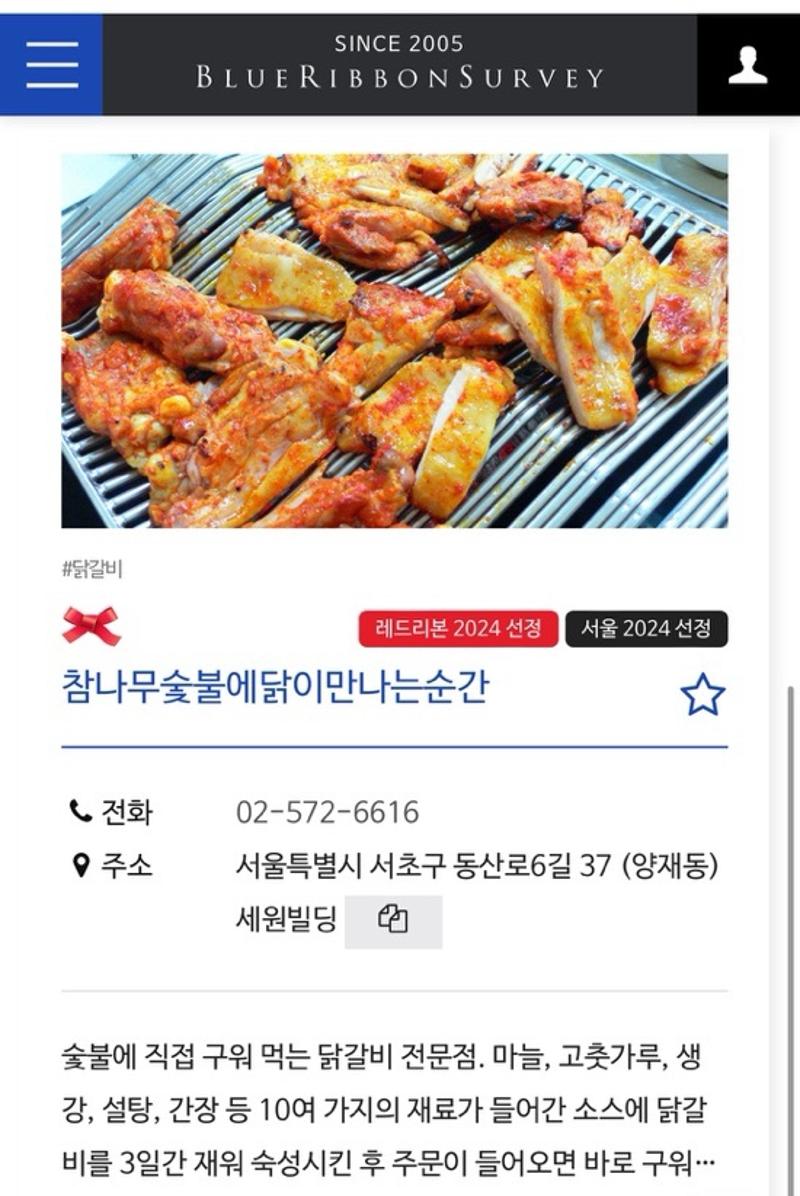 개업32년. 숯불닭갈비 식당으로 단골손님이 80% 대표나이가 74이라 이제 좀 쉬려함. 또한 모든 쏘스 식자재는 최고급만 직접제작하여사용함.