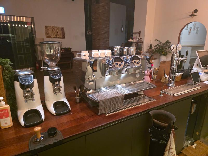 고가커피머신기와 장비세트, 선반냉장고 6개, 음료냉장고 3대, 천정에어컨 4대, 놀이방등