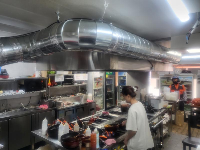 배달음식 최적의 구조! 화구가12개 양쪽에서 조리가 가능하며 배달음식 주방 최적의시설