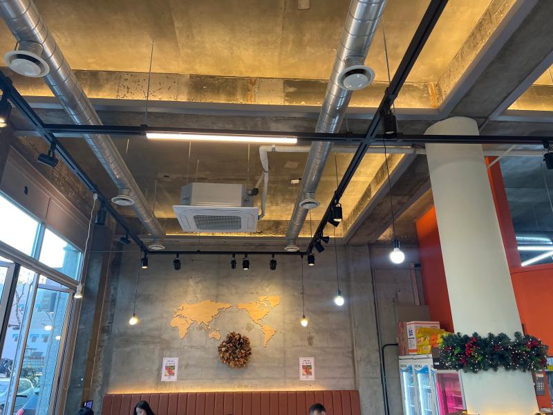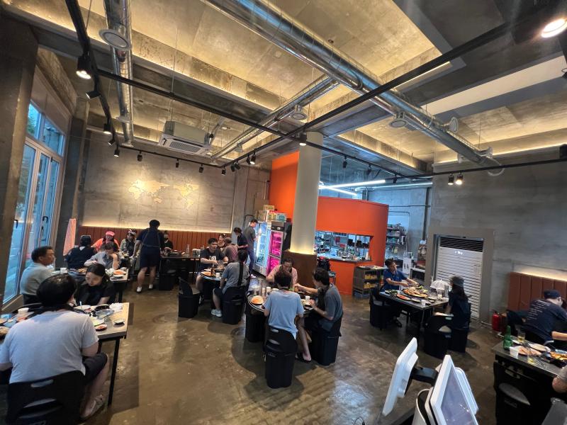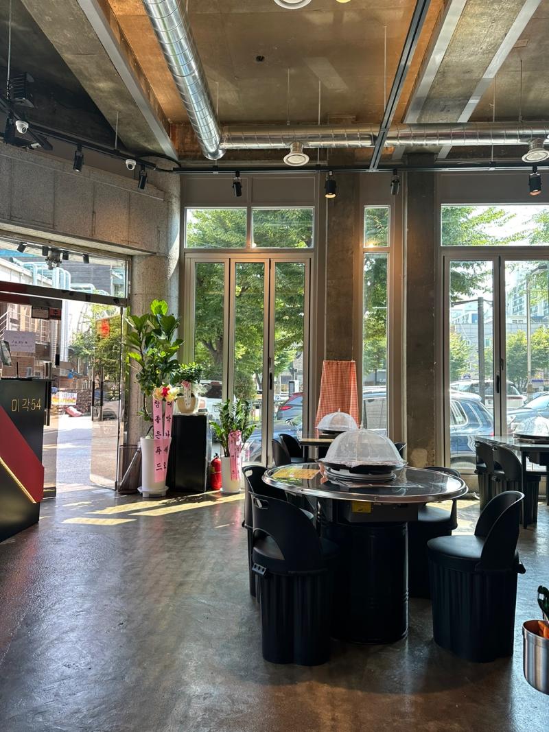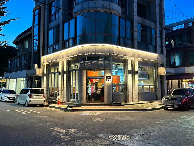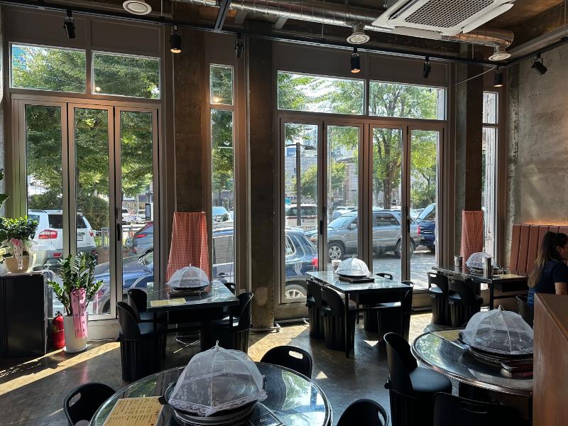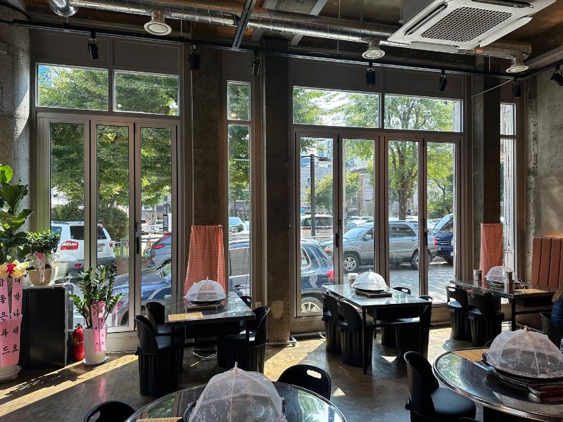 1층 코너 매장으로 층고가 높고 개방형 창문과 통유리 인테리어로 눈에 확 들어옴